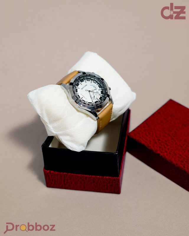 MSTIANQ Men’s Luxury Sport Chronograph – White Dial & Tan Leather