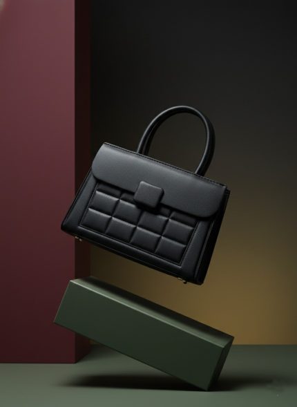 Drobboz Noir Quilted Executive Satchel – Black Structured Crossbody Handbag