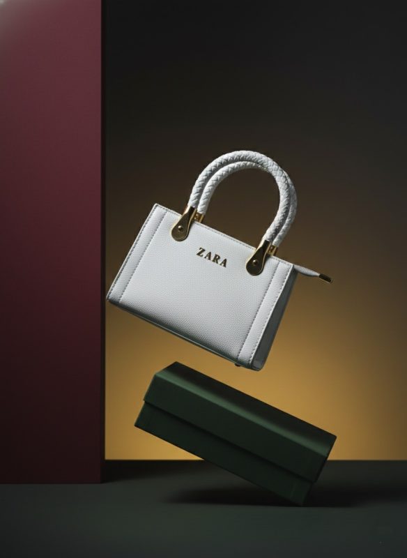 ZARA Elegant Braided Handle Satchel – White Gold-Tone Structured Handbag
