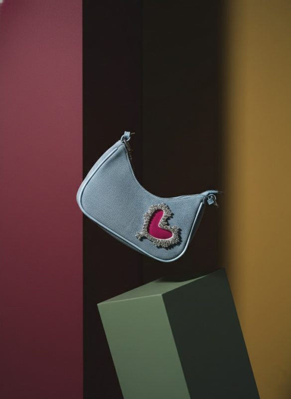 Drobboz Denim Heart Crystal Embellished Baguette – Y2K Blue Denim Hand Bag