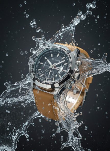 MSTIANQ Men’s Luxury Sport Chronograph – Black Dial & Tan Leather