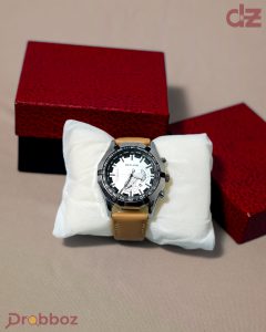 MSTIANQ Men’s Luxury Sport Chronograph – White Dial & Tan Leather