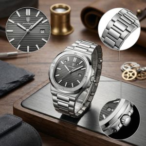A Masterpiece of Timeless Elegance. The OLEVS 6898 is designed for the modern gentleman who values understated luxury. With its brilliant gold-tone casing and a deep sunray blue dial, this watch offers a regal look that perfectly complements a sharp suit or a semi-formal outfit. It’s not just a watch; it’s a mark of distinction.