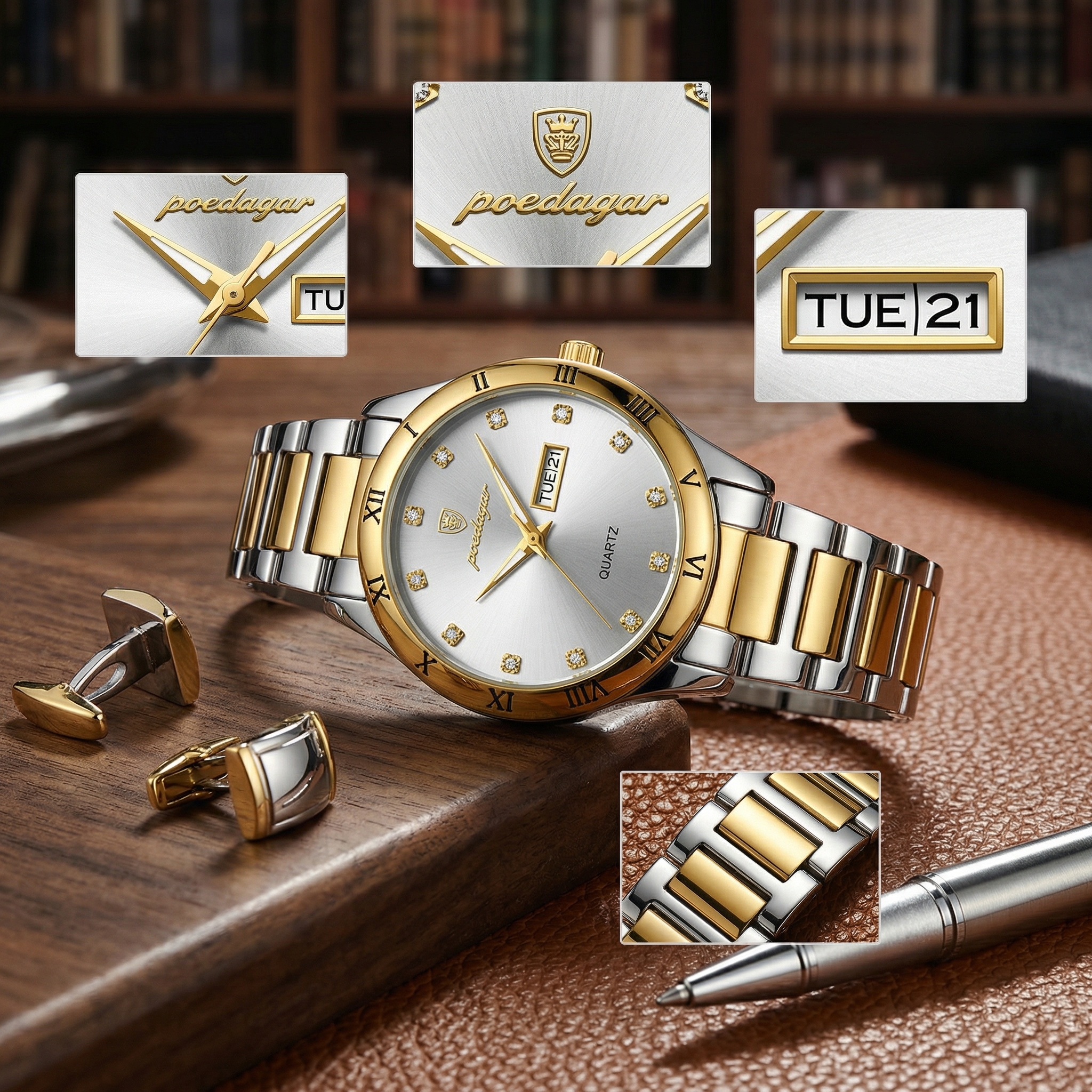 POEDAGAR 615 – Luxury Two-Tone Business Quartz Watch