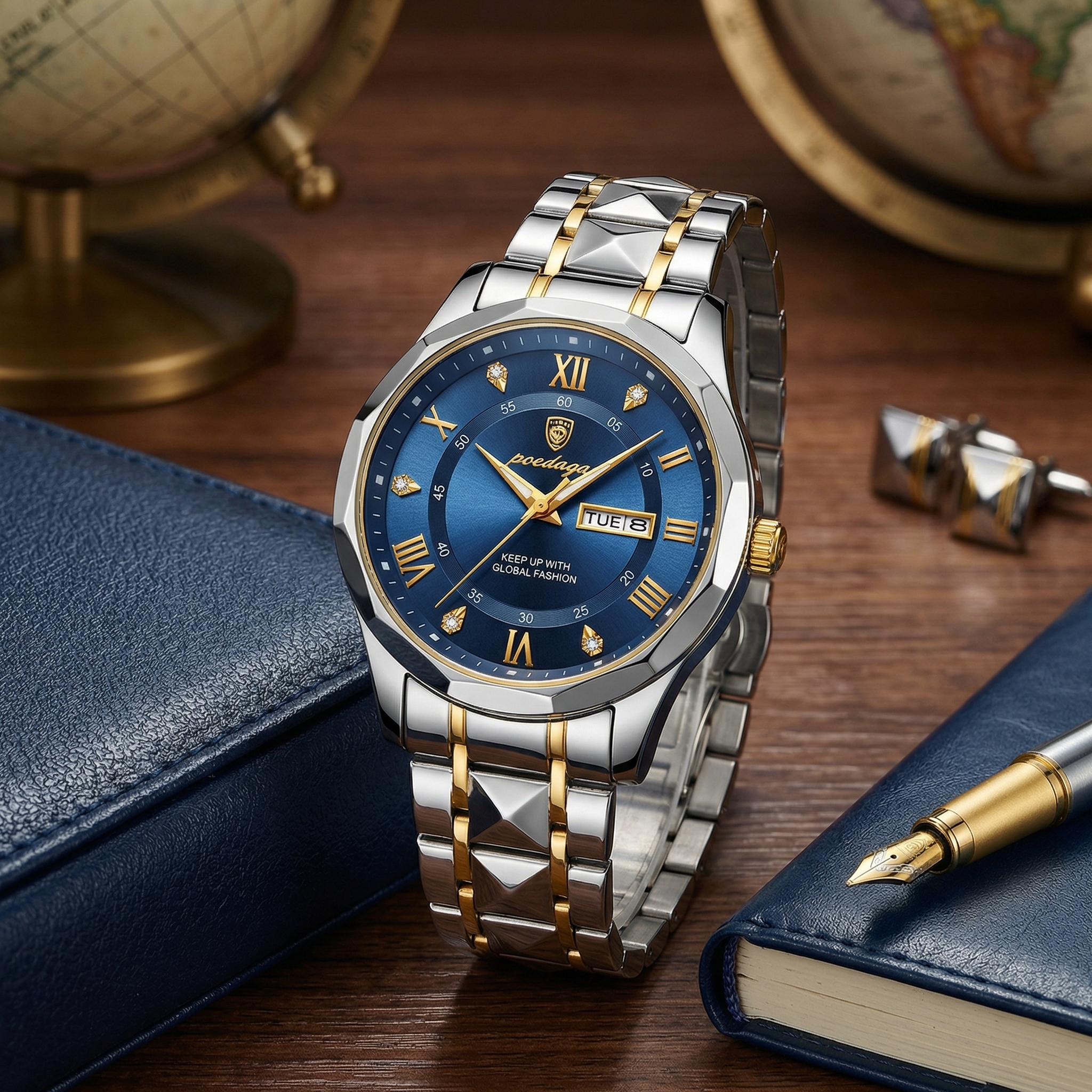 A Revolution in Texture and Light. The POEDAGAR 615 is designed for the man who wants his accessories to be as multi-dimensional as his lifestyle. Featuring a rare “Pyramid” textured bracelet and a sapphire-style faceted crystal, this watch doesn’t just tell time—it reflects brilliance from every angle. It is the perfect blend of bold industrial design and high-end luxury.